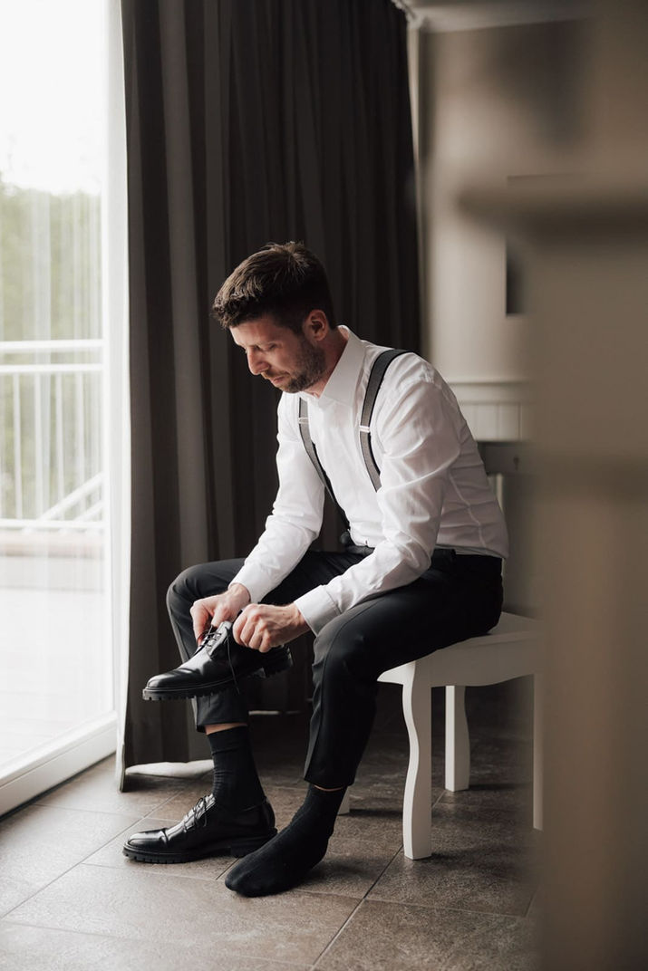 Die Atmosphäre des Ortes strahlte eine ruhige Eleganz aus, und das Paar spiegelte diese sofort wider. Der First Look im Wald war ein Moment, der alles andere in den Hintergrund rückte. Umgeben von der Natur und der frischen Luft, war es der perfekte Einstieg in einen Tag voller Liebe und Intimität. Die Freude und Aufregung, die sie ineinander fanden, war ansteckend und füllte den Raum.